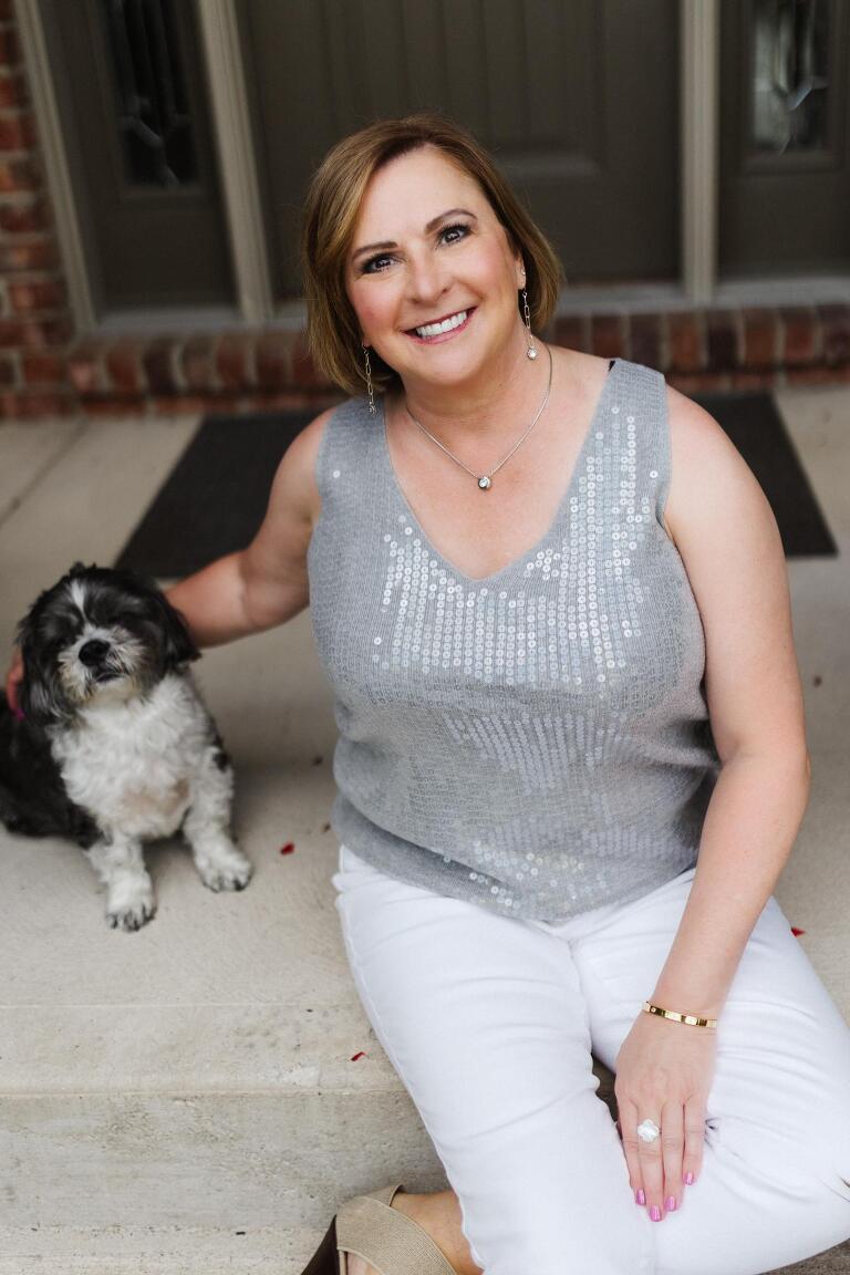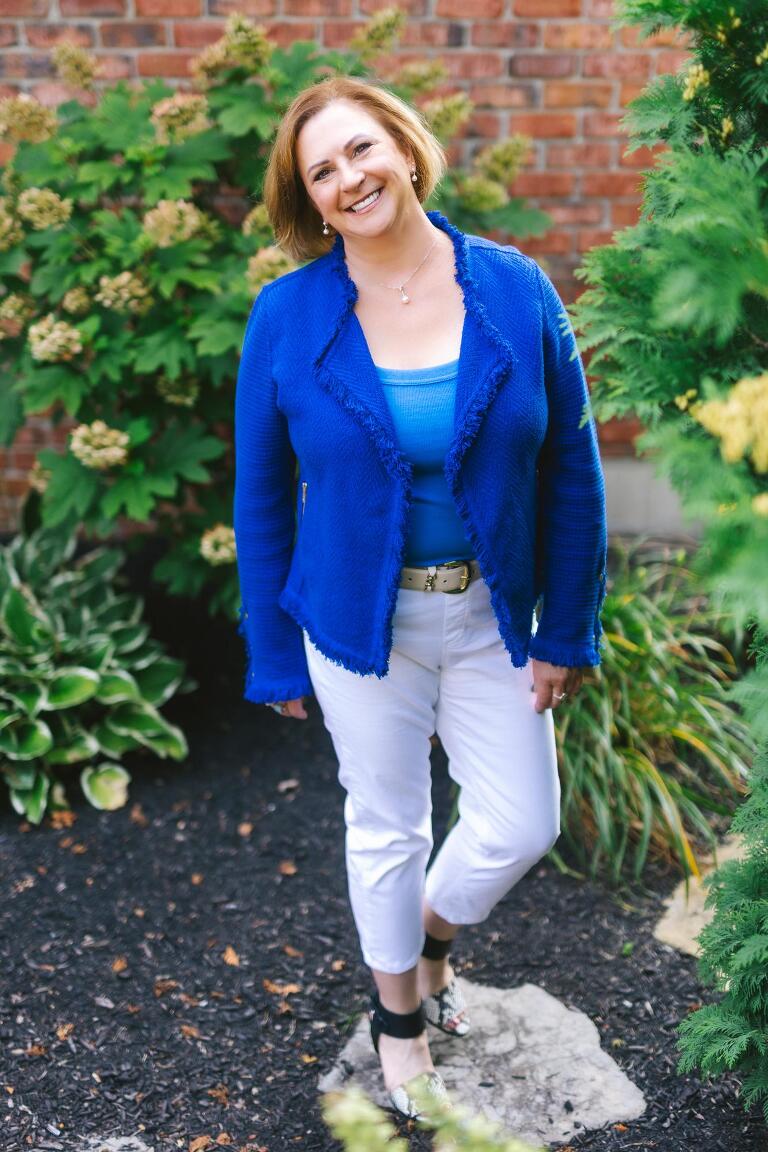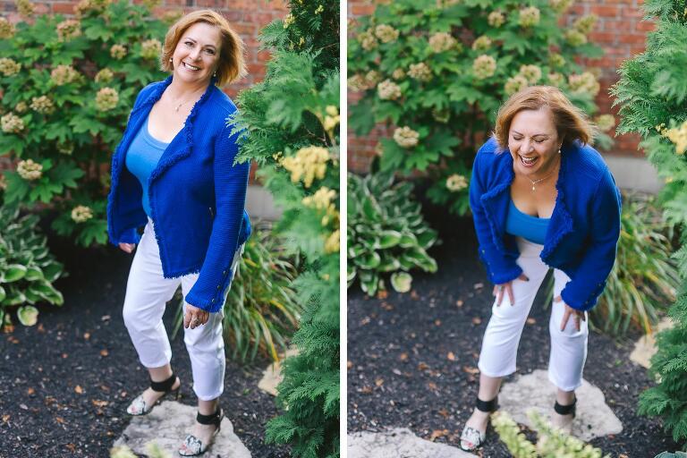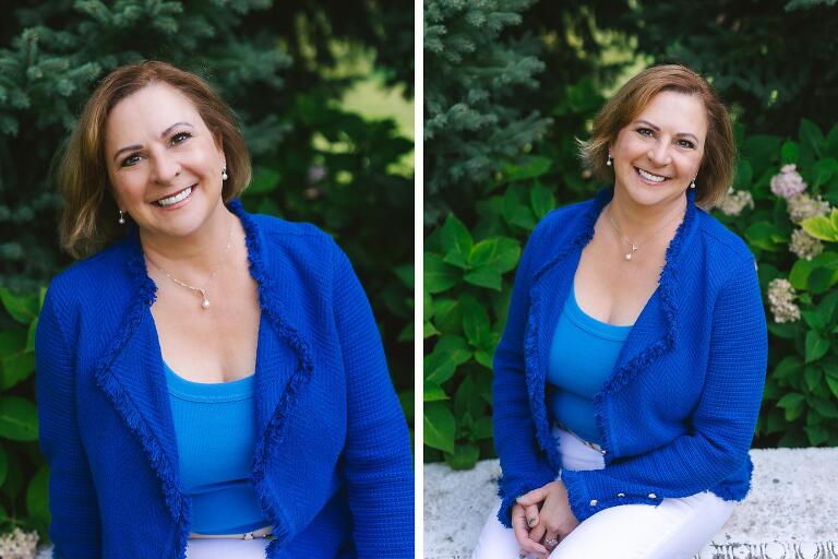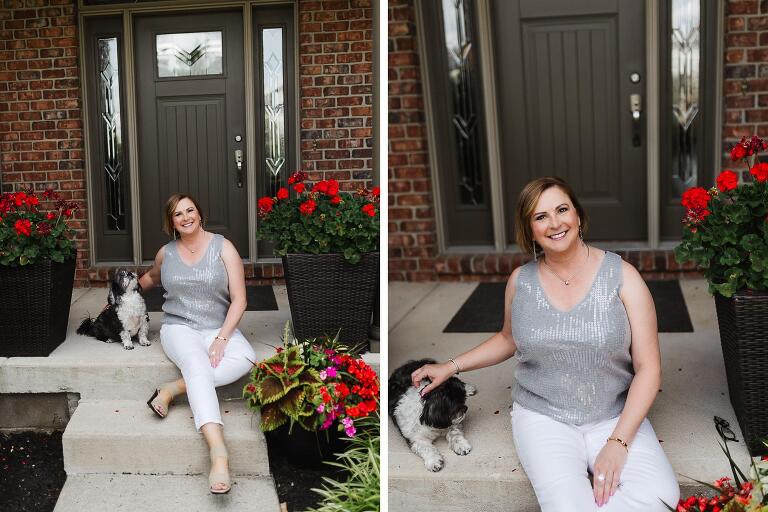 I suggested a Lifestyle headshot session which includes 30 minutes and an outfit change or two- just enough time and variety to show off Lisa’s beautiful smile, gorgeous red geraniums, and of course, her beloved furbabies!