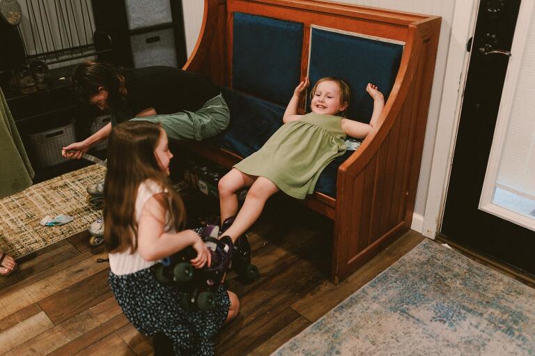 The Holm family is rich. Lush with the fullness of life, their modest farmhouse buzzes with the sounds of chickens clucking, horses nickering and girls giggling. There are lazy kittens loitering and watchdogs watching. There’s mama’s skirts to hide in and daddy’s hands to hold onto and a long lane leading down to the creek.