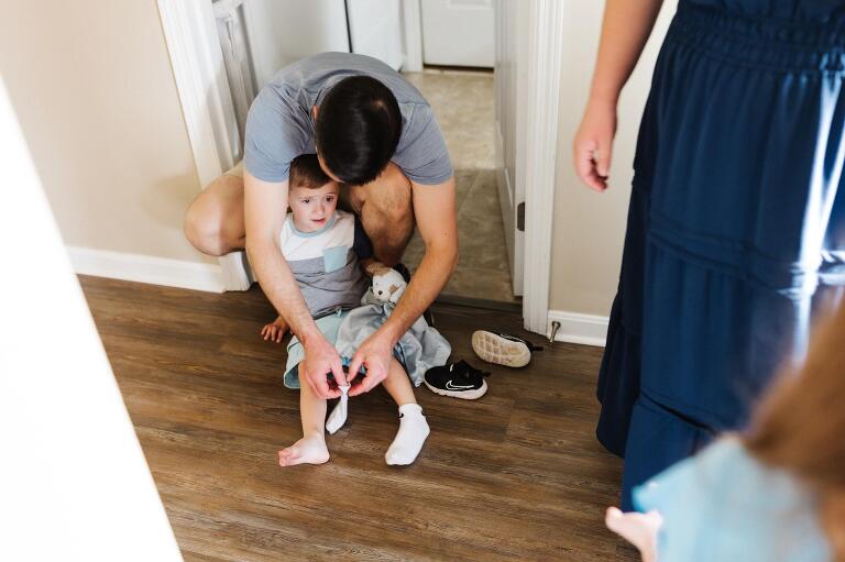 So when Jaron reached out to schedule a family session, it wasn’t just about grabbing some nice pictures of all of them looking at the camera and smiling. It was a gift of memories, a surprise for his wife, Brittany, a way to hold onto the walls, corners, and cozy chaos that have shaped the most meaningful years of their life so far.
