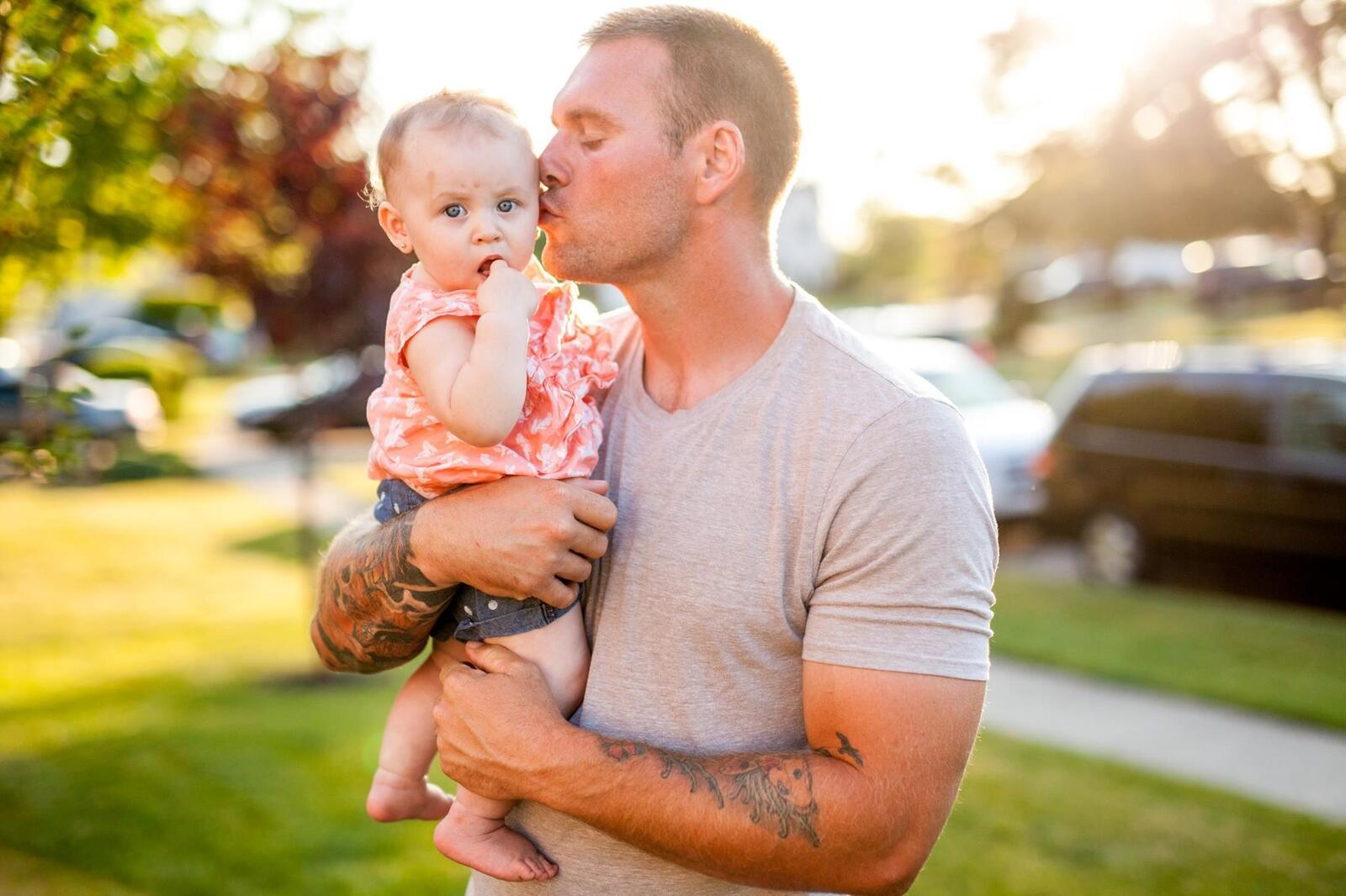 The best photos weren't necessarily the ones of him looking directly at the camera smiling, but the ones where he was connecting: holding his son's hand as they walked down a country road. Massive tattooed arms engulfing his baby girl as he kissed her cheek.