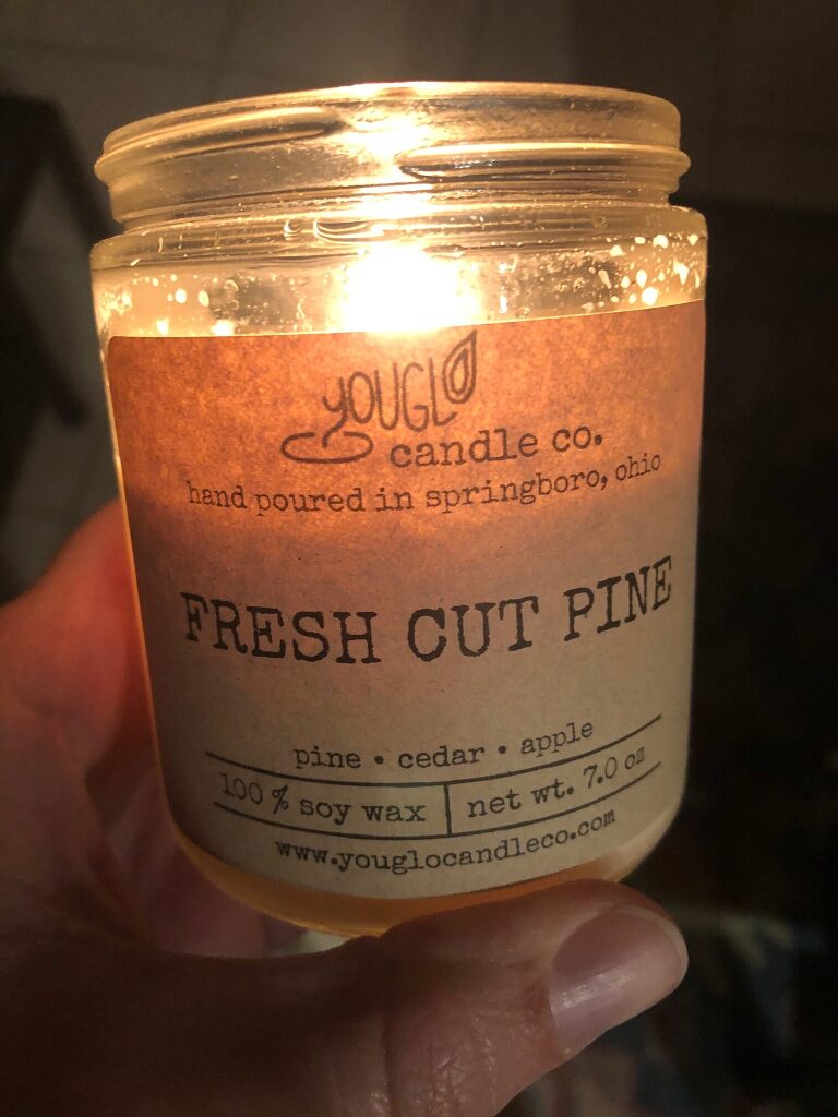 My good friend Joan gave me this candle for my birthday. She bought it from her granddaughter, Tomi, who has her very own candle business. This year Tomi had a booth at the Christmas in Springboro Festival and of course, Joan was there all weekend to show her support.