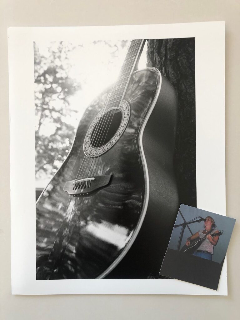 My first guitar was a gift from my stepdad Dale. I kind of forget exactly but I believe it was around my 16th birthday when he gave it to me. It was a shiny, starburst gray Ovation and I played it like it was nobody’s business. And by that I mean I played the two simple chords Dale taught me loudly, passionately and most of all, badly. As soon as I got those chords down, I wrote a song with them. I even remember the words: Demise, we cover our eyes and hide from the lies…under blue skies? Something super original like that. And thus began my songwriting journey. I took my shiny guitar with me everywhere and it became part of my identity.