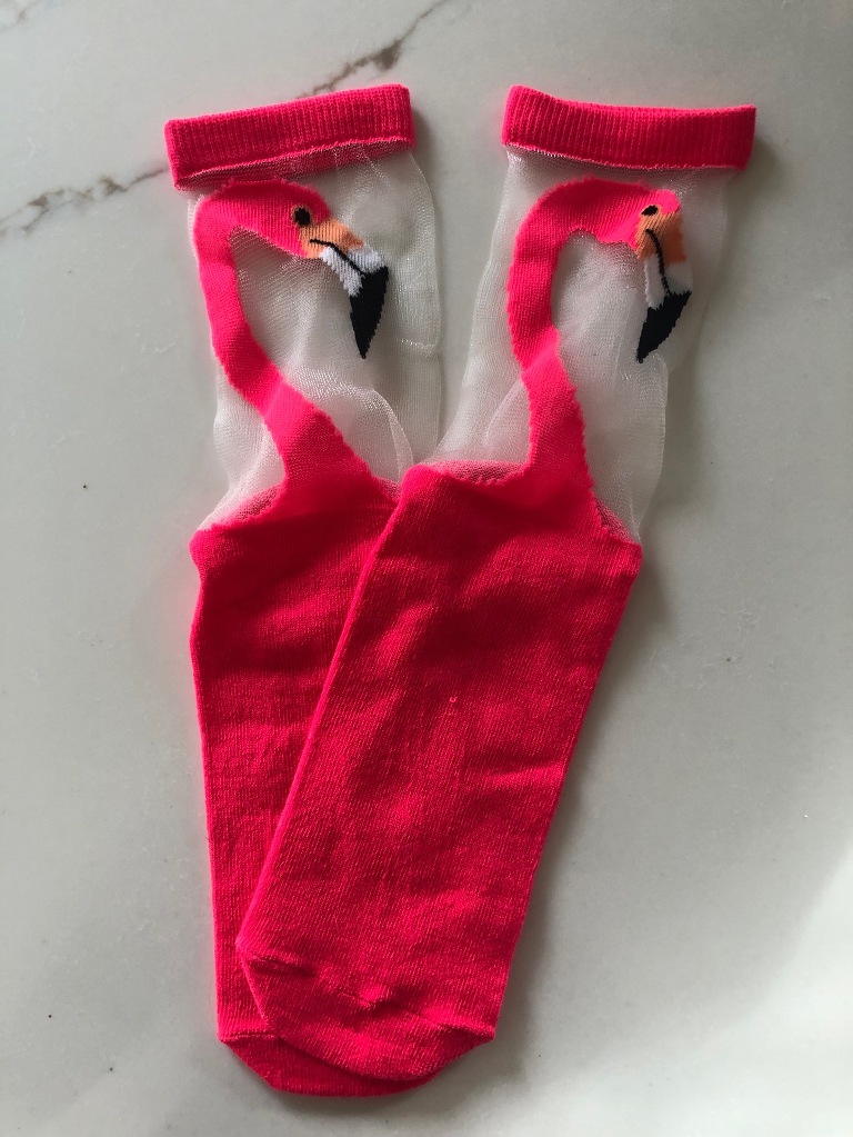 My friend Stephanie gave me these socks a few months ago. She had bought them for me a long time ago and kept forgetting to give them to me. I’ve known Stephanie since the 7th grade. She was so shy and I was so loud, that it took us a long time to really get to know one another. These days I only see her a few times a year but I cherish the times I do. Stephanie is an incredibly thoughtful, creative and kind person. The reason she got me the pink flamingoes is because when I first started this blog back in 2011 I used a pink flamingo as part of the logo. The pink flamingo was a nod to Roy- you can read more about him here.