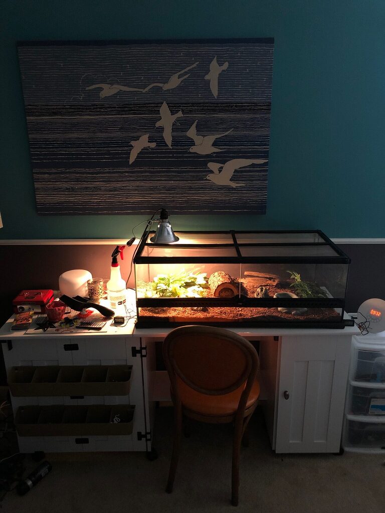 For Savannah’s 12th birthday this year, Jenny took Savannah to the pet store and bought her a Ball Python which Savannah named Mooshu. Mooshu has been growing- apparently they can get up to 8 feet and live as long as 30 years, fun facts I can add to my ‘wish I would’ve known before I said yes’ list. He/She/They (it’s practically impossible to figure out a snake’s gender) needed a new cage. Jenny just happened to have an extra stored in her garage.