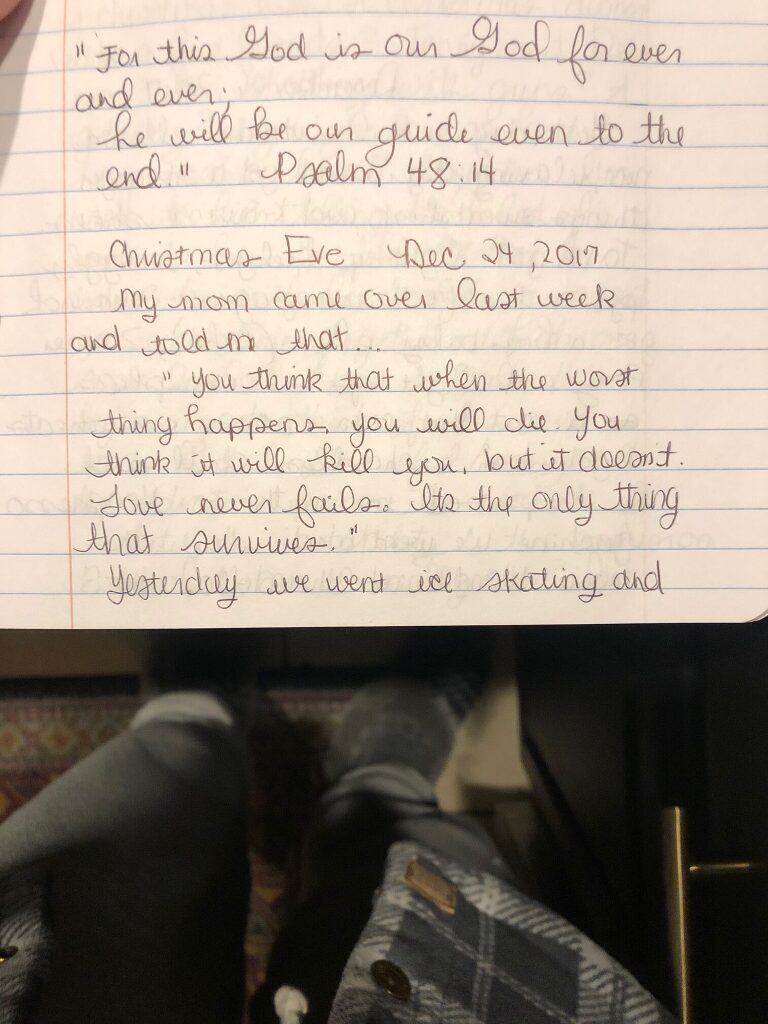 I found this journal entry I had written on Christmas Eve right after Bobby was killed. Our family was raw with pain- the holidays were simply unbearable. I’m grateful for my mother who honored her grief and taught me to honor mine.