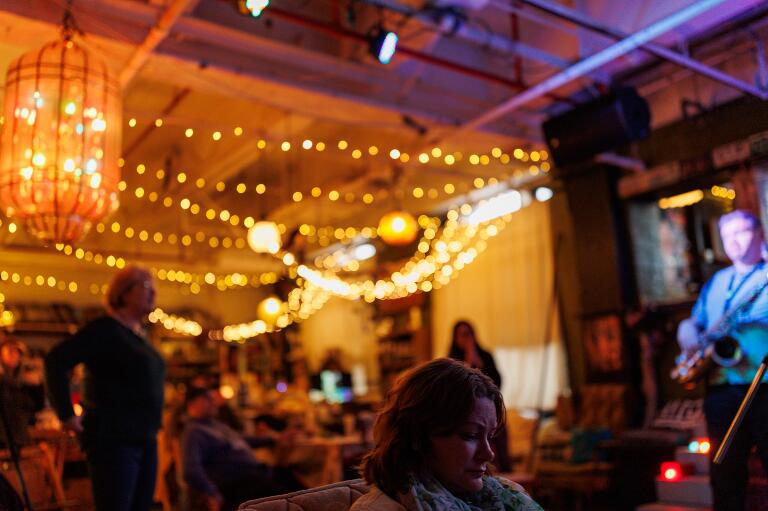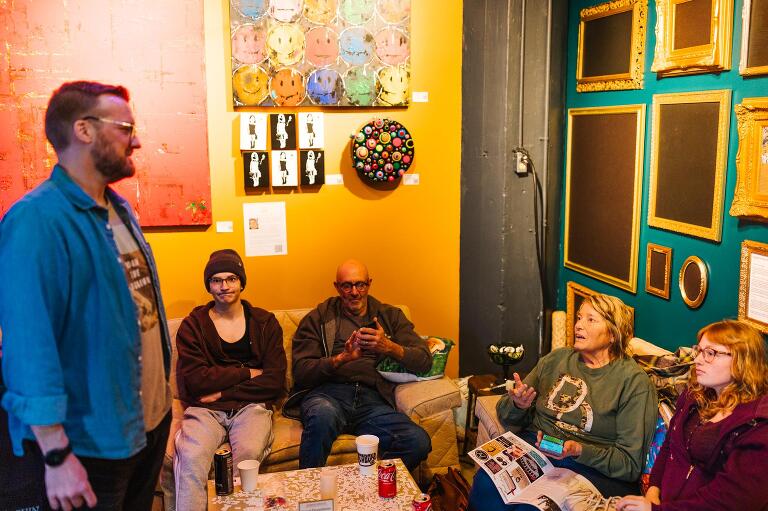 Just a small group of us cozily gathered there in Jen and Jonah’s creative gallery, soaking up the room draped in original art, funky furniture, and colorful twinkle lights.