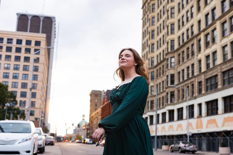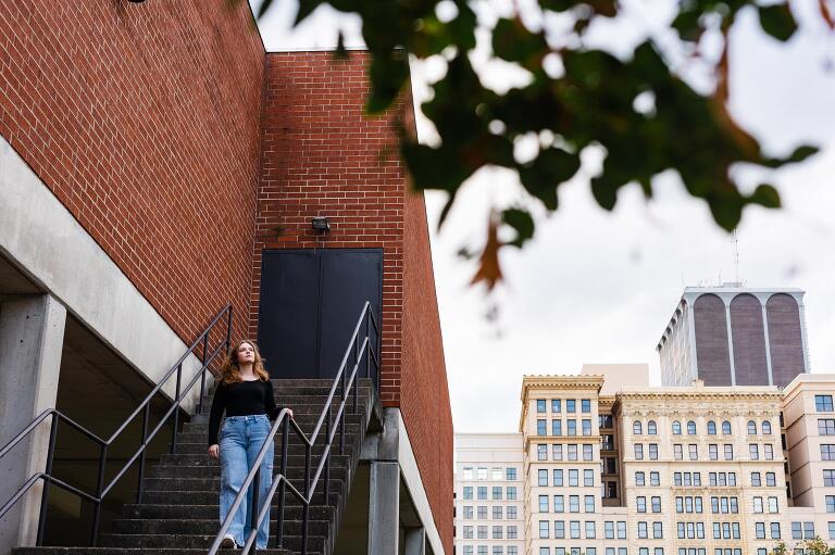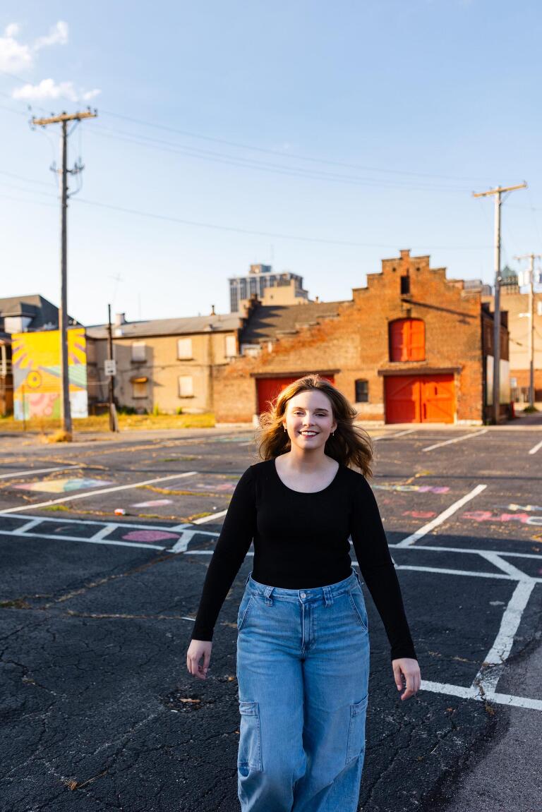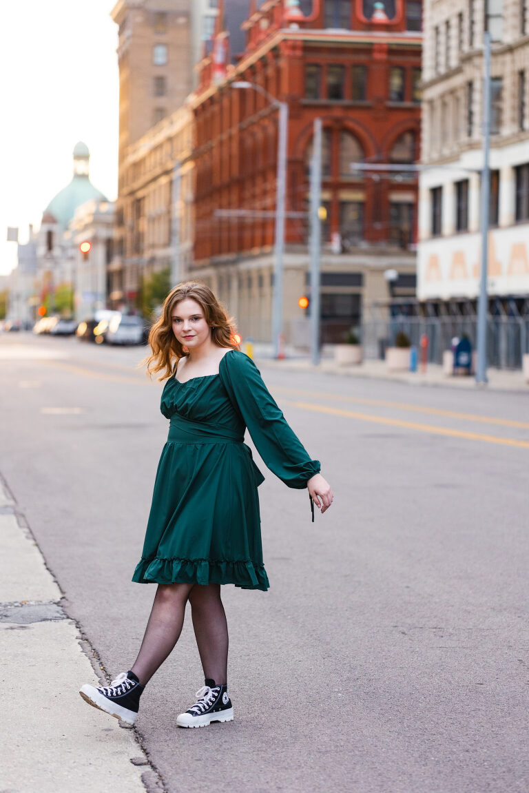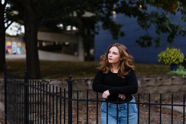 Ella is an old family friend and a senior this year at Oakwood High School. She plans to have a career in theatre and to travel the world. We shot her senior session in downtown Dayton on a bright October day. We played in parking lots near the colorful K12 Tejas Art Studio, chilled on iron fences at the niche Neon and twirled dangerously in the city streets. Quiet, focused and fierce, Ella was a natural in front of my lens and it was evident that she is a bright star burning.