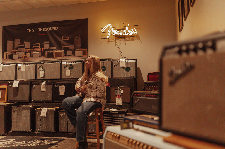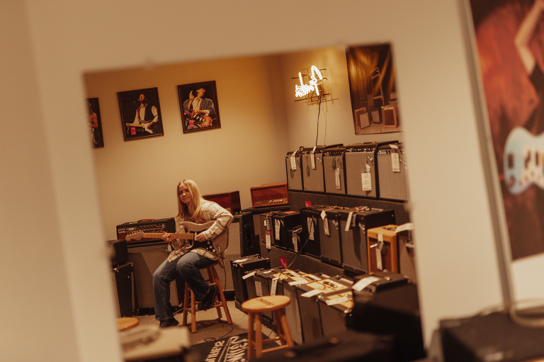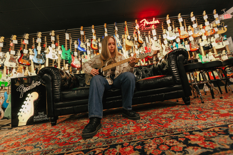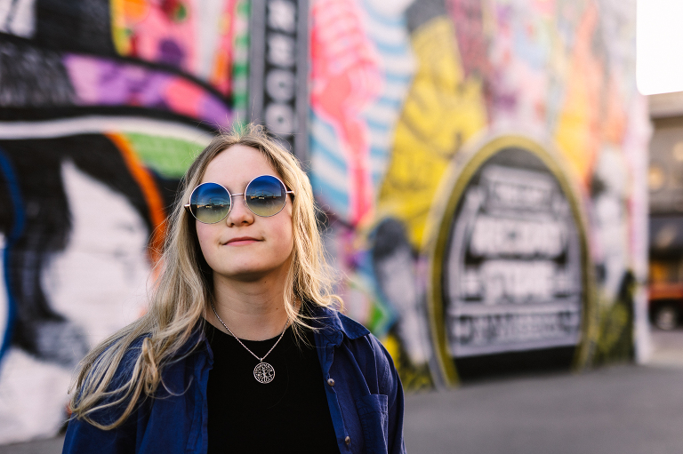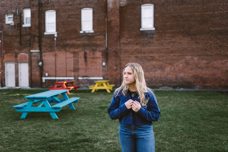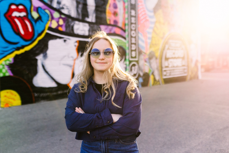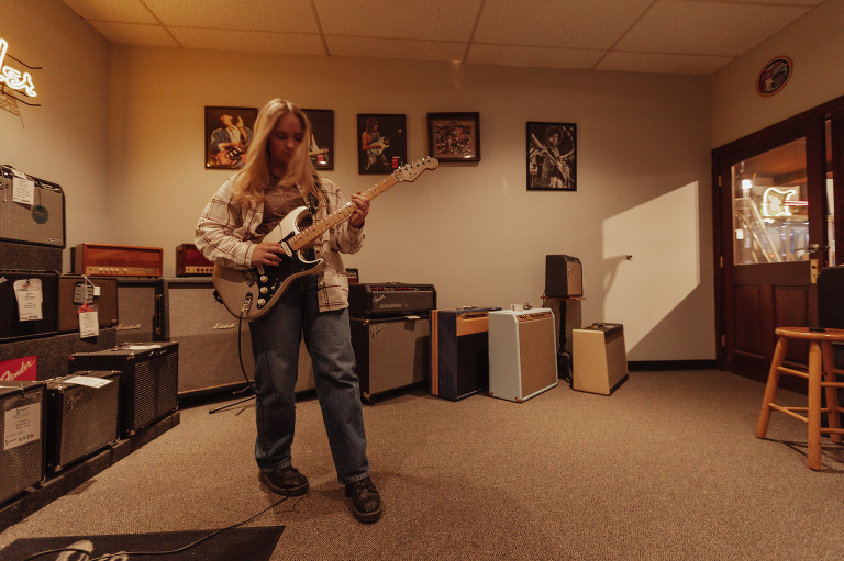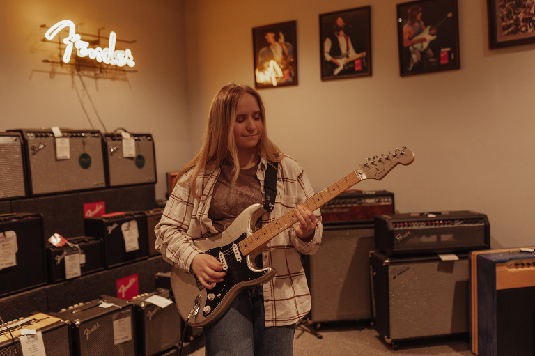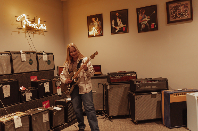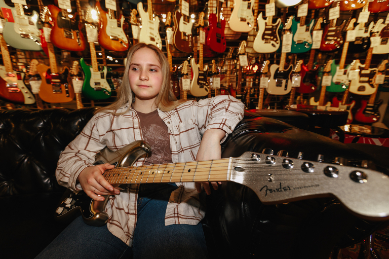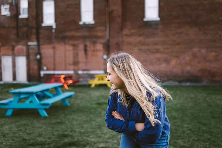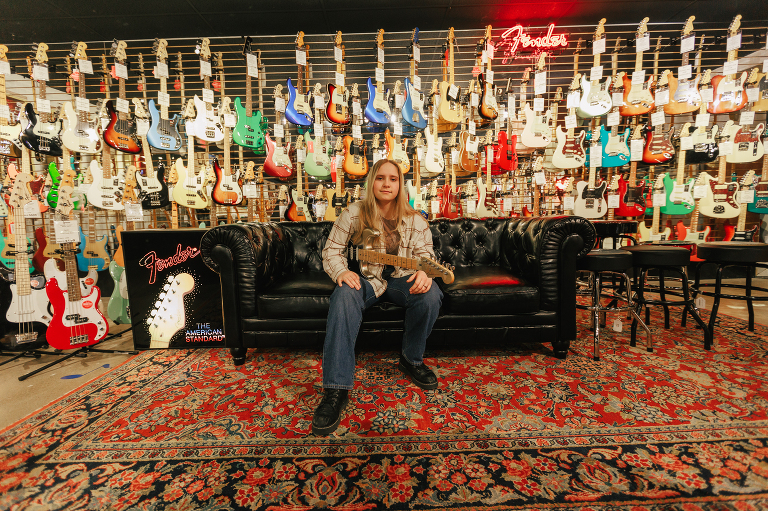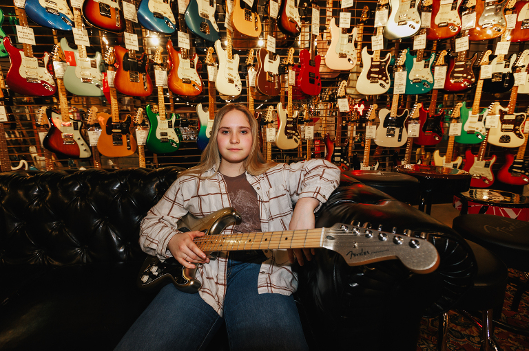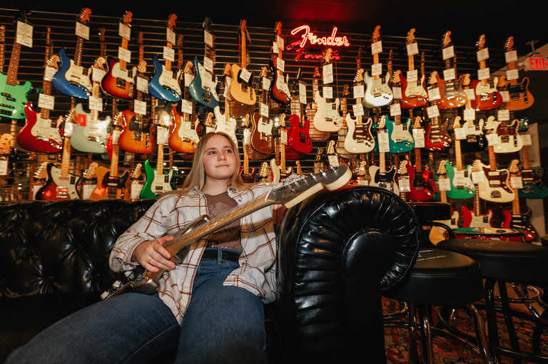 Jenna is Luke’s sister and is graduating early from CinDay Academy. The only problem I had photographing Jenna’s senior session was that I didn’t want to stop! We had over a thousand pictures of creative fun exploring downtown Miamisburg at sunset and jamming out at Hauer music store. Thanks to the laid back peeps at Hauer for letting us use their amp room and guitar wall for the best kind of loud and colorful display…
